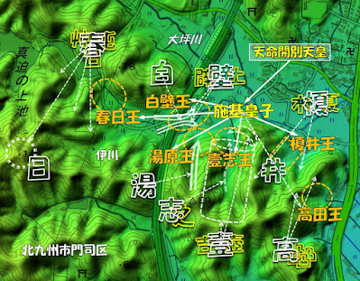 「參河國」は、古事記の三川之衣・穗と登場し、現地名は北九州市小倉南区湯川及びその周辺の地域と推定した(左図を再掲)。